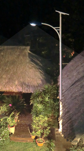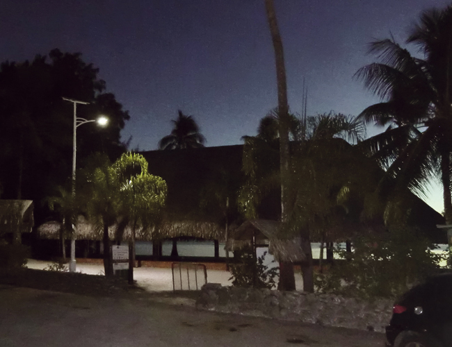 De nuit le lampadaire sécurise le site du fare pote de Matira ce qui permet aux visiteurs de profiter des nuits douces et de la plage de Matira en toute quiétude. |
