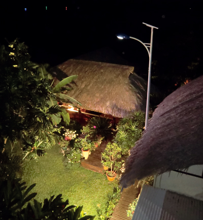 L'espace éclairé par les lampadaires solaires n'offre pas une lumière moins intense que celle de l'avenue du Prince Hinoï. |