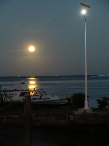 Le soleil a rendez-vous avec la lune, en effet sur cette photo, les rayons solaires que nous renvoie la lune, arrivent 12 heures après la lumière que notre lampadaire solaire a capté la veille. |